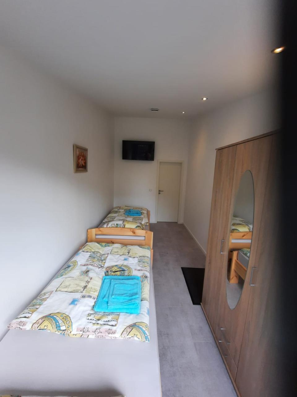 Die Wohnung besteht aus zwei Einzelzimmer, die auch ggf. als Doppelzimmer nutzbar sind. Unsere Monteurzimmer sind voll ausgestattet mit Schränken, Nachtkästchen, sowie frisch bezogenen Betten. Es steht den Gästen sowohl gemeinschaftliche Küchen als auch großzügige Bäder zur Verfügung.