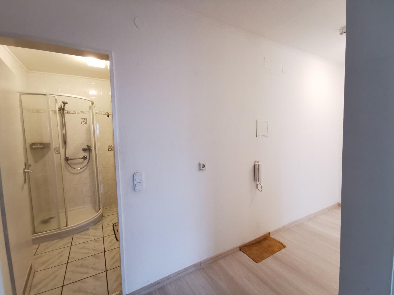 Das Bad (ohne Fenster) verfügt über ein Waschmaschinenanschluss sowie Dusche.