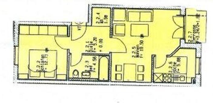 Aufgeteilt ist die Wohnung auf ein Schlafzimmer, sowie ein großzügiges Wohnzimmer mit Terrassenzugang.