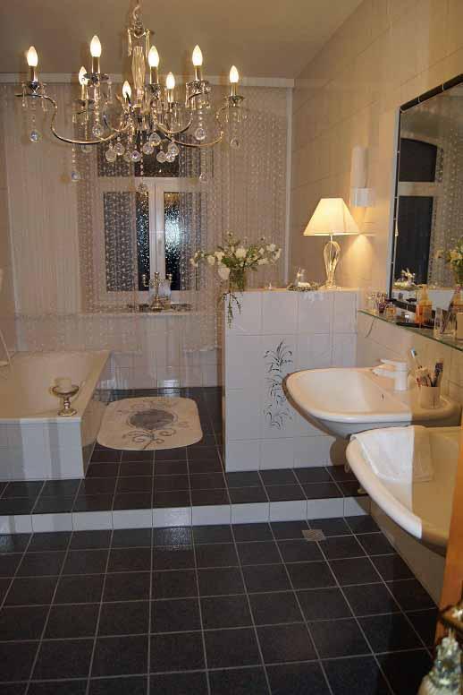Nebst einem Kinderzimmer/Büro finden Sie westlich ausgelegt das Elternschlafzimmer, gleich daneben das Tageslichtbad mit Badewann, Dusche, Wc sowie zwei Waschbecken.