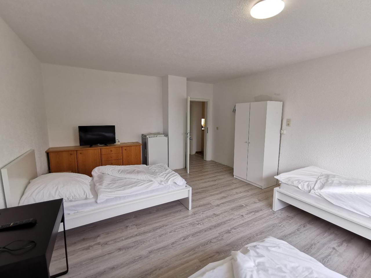 Unsere Zimmer sind voll ausgestattet mit Schrank, Bett und Nachtkästchen, frisch bezogenen Betten, TV und Wifi.