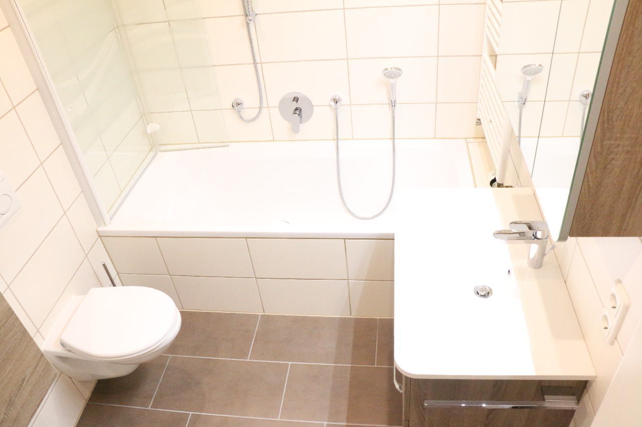 Sie betreten Ihre zukünftige Wohnung über einen Laubengang und stehen im geräumigen Eingangsbereich. Zu Ihrer rechten befindet sich gleich das Kinderzimmer, eins weiter befindet sich der Koch-/Essbereich, dieser ist mit einer modernen und neuwertigen Einbauküche samt Markengeräten ausgestattet, diese ist Bestandteil des Mietobjektes. Weiter geht es in das großzügig geschnittene Schlafzimmer. Das Wannenbad ist gleich daneben und wurde 2014 komplett renoviert. Im lichtdurchflutenden Wohnzimmer befindet sich der Zugang zum südlich ausgerichteten Balkon. Im Ganzen sind alle Räume mit modernem Laminat ausgelegt, Flur, Küche und Bad sind gefliest.