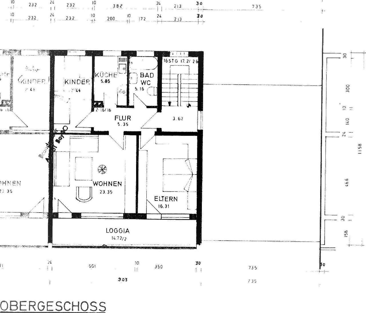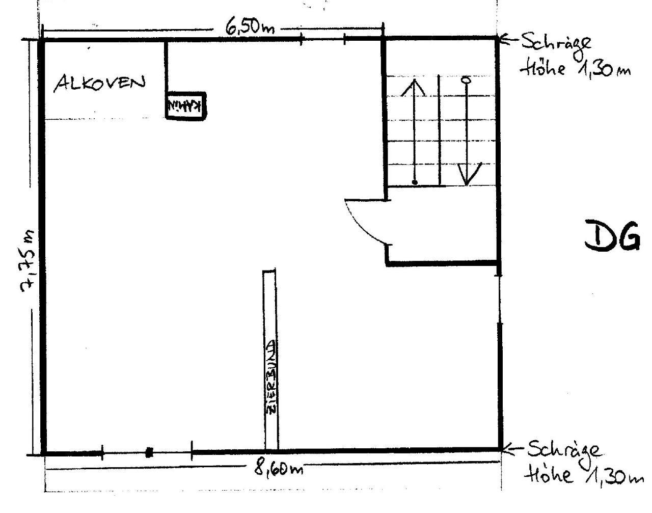 Im Obergeschoss lässt sich ohne weiteres eine eigen Wohneinheit einrichten, da alle Anschlüsse für eine Küche schon vorhanden sind.